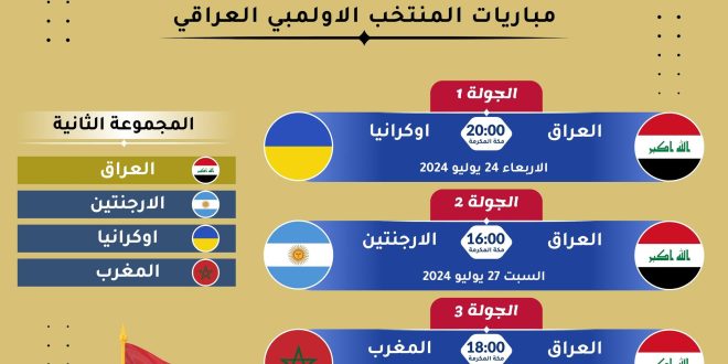 بدأ المنتخب الأولمبي العراقي لكرة القدم معسكره التدريبي في مدينة انجلييت الفرنسية، تحضيراً للمشاركة في دورة الألعاب الأولمبية في باريس، في الثلث الأخير من الشهر الحالي.