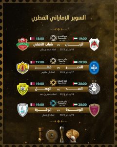 أما المباراة الثالثة، فستكون بين السد بطل الدوري القطري والوصل بطل الدوري الإماراتي في 18 يناير 2025 في الدوحة على استاد جاسم بن حمد في السابعة بتوقيت قطر والثامنة بتوقيت الإمارات.