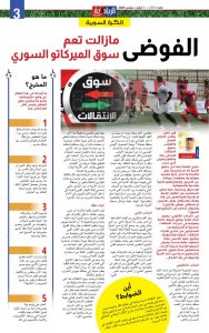 وإيجاد آليات شفافة واضحة تسهم في تواجد اللاعب الأفضل في ملاعبنا بعيدا عن المصالح الشخصية والسمسرة اللتان انهكت كرتنا السورية.