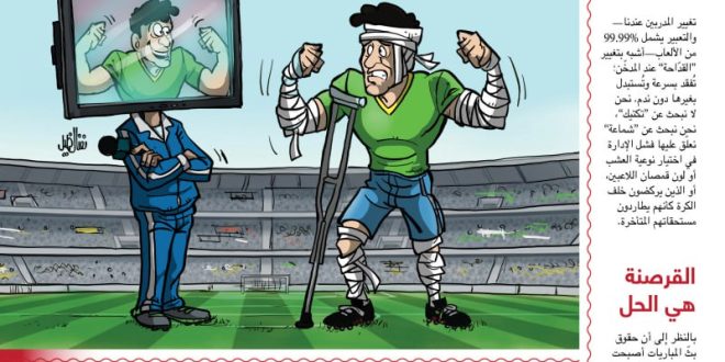 يدخل لاعبُنا المحليّ سنَّ اليأس في سنّ الثلاثين؛ لذلك تراه يبحث عن حجج لابتعاده عن الملاعب بحجّة “الإصابات”، بينما اللاعب الأوروبي يعتزل في سنّ الأربعين بحجّة “الملل” الفرق بسيط: الأوّل يتدرّب على أرضيّة تشبه طريق سفر، والثاني يتدرّب على بساط حريري.